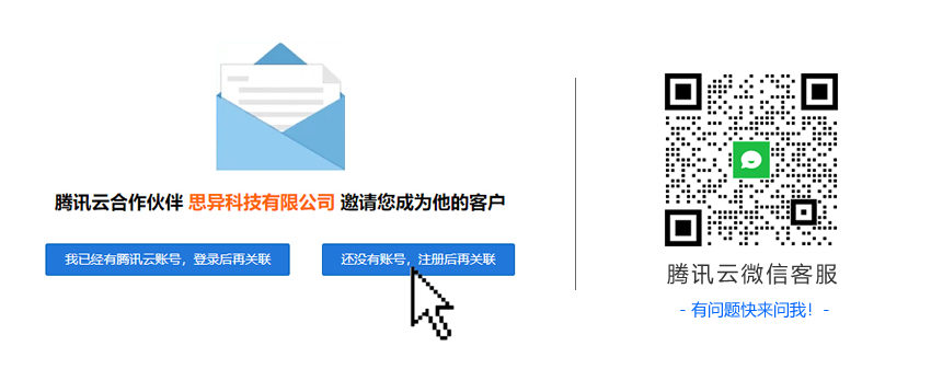第一步:注册关联帐号  点击连接 https://partner.cloud.tencent.com/invitation/18140140005f9918d01cb72 已经有腾讯云账号,登录后再关联;还没有账号,注册后再关联(注册关联后联系本站客服审核,没有关联帐号无法获得折扣优惠)。